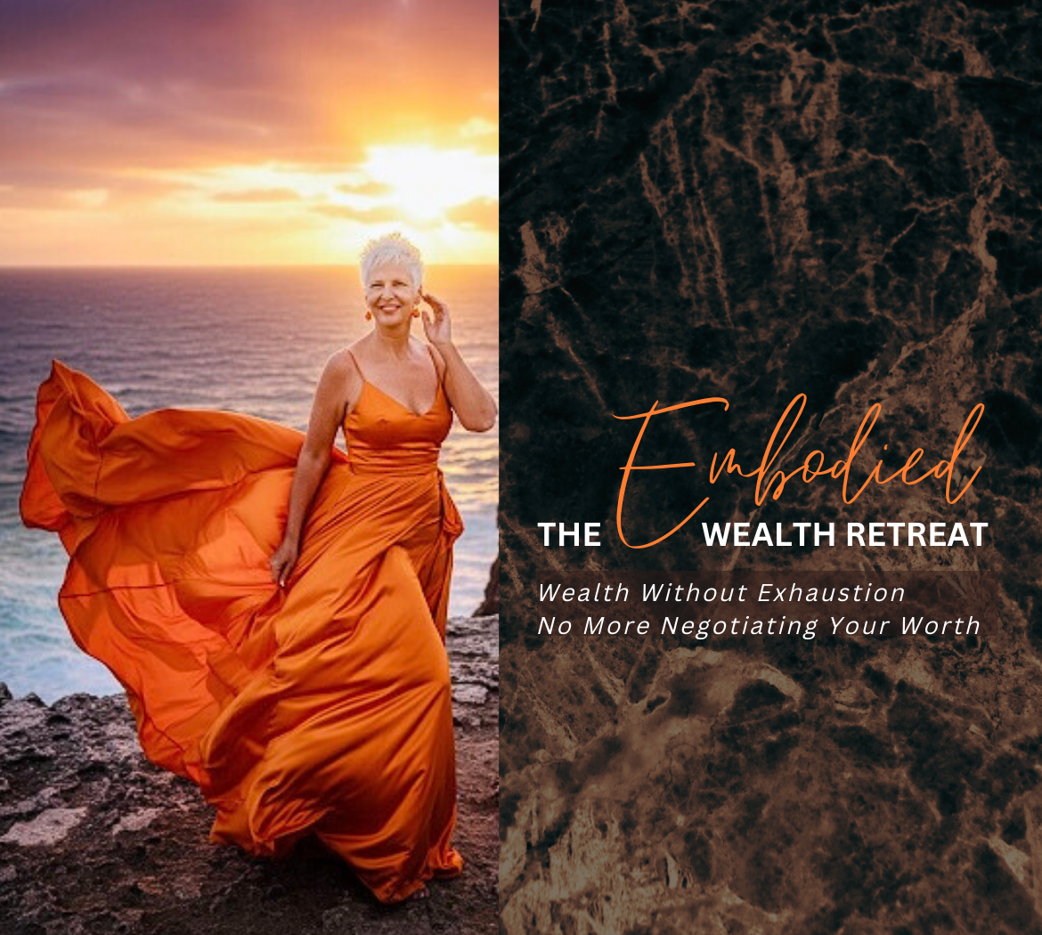 The 5-day Embodied Wealth Retreat - with 90 days integration is a private immersion where you live and work on your own terms - aligned with your soul-truth, standards and frequency. Premium pricing and high-level relationships become your new normal. When this feels right, you know what to choose next.